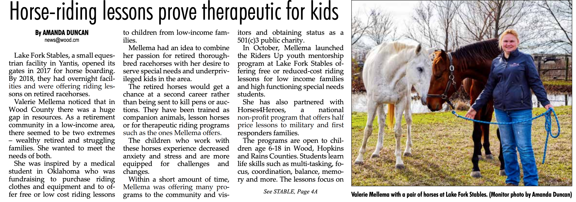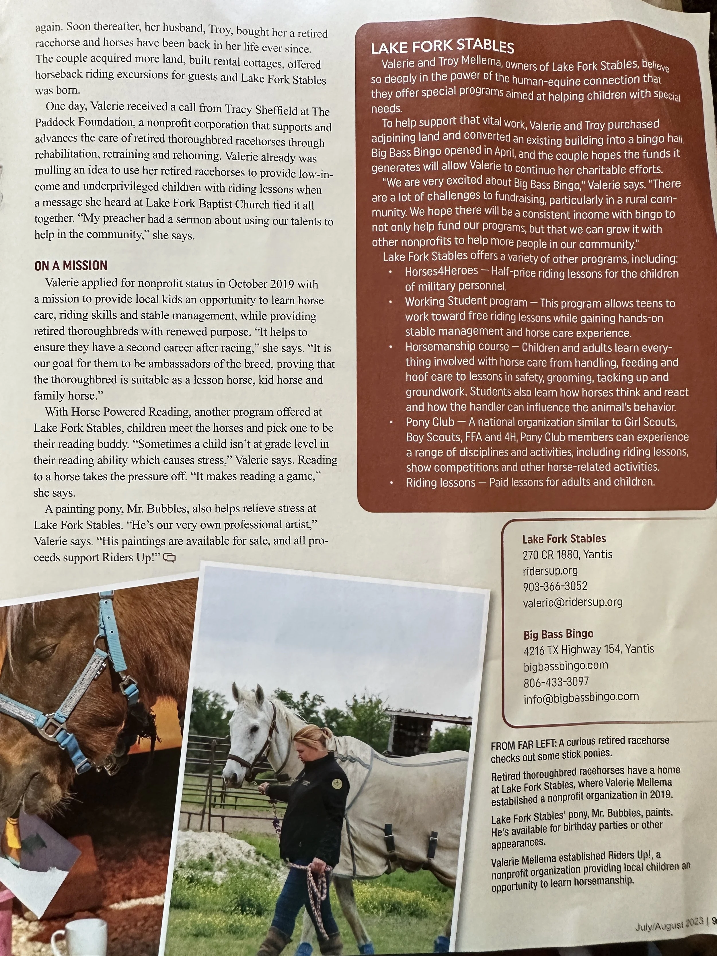 Riders Up! in the News Donate Wood County Monitor 2019 Peoples Connection Magazine July/August 2023 East Texas Live - 2nd Annual Farm Fall FestivalSloan Law Firm: What Matters to You, Matters to Us