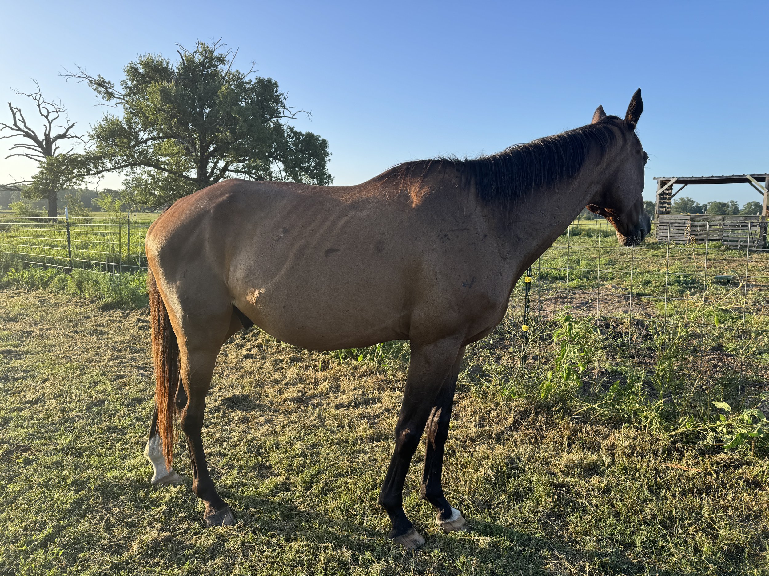 Rascal was saved from a kill pen in Texas and came to LFS thanks to Ring The Bell Funds from The Paddock Foundation. He has begun training as a lesson horse and looks like he would make an excellent Western Dressage mount.