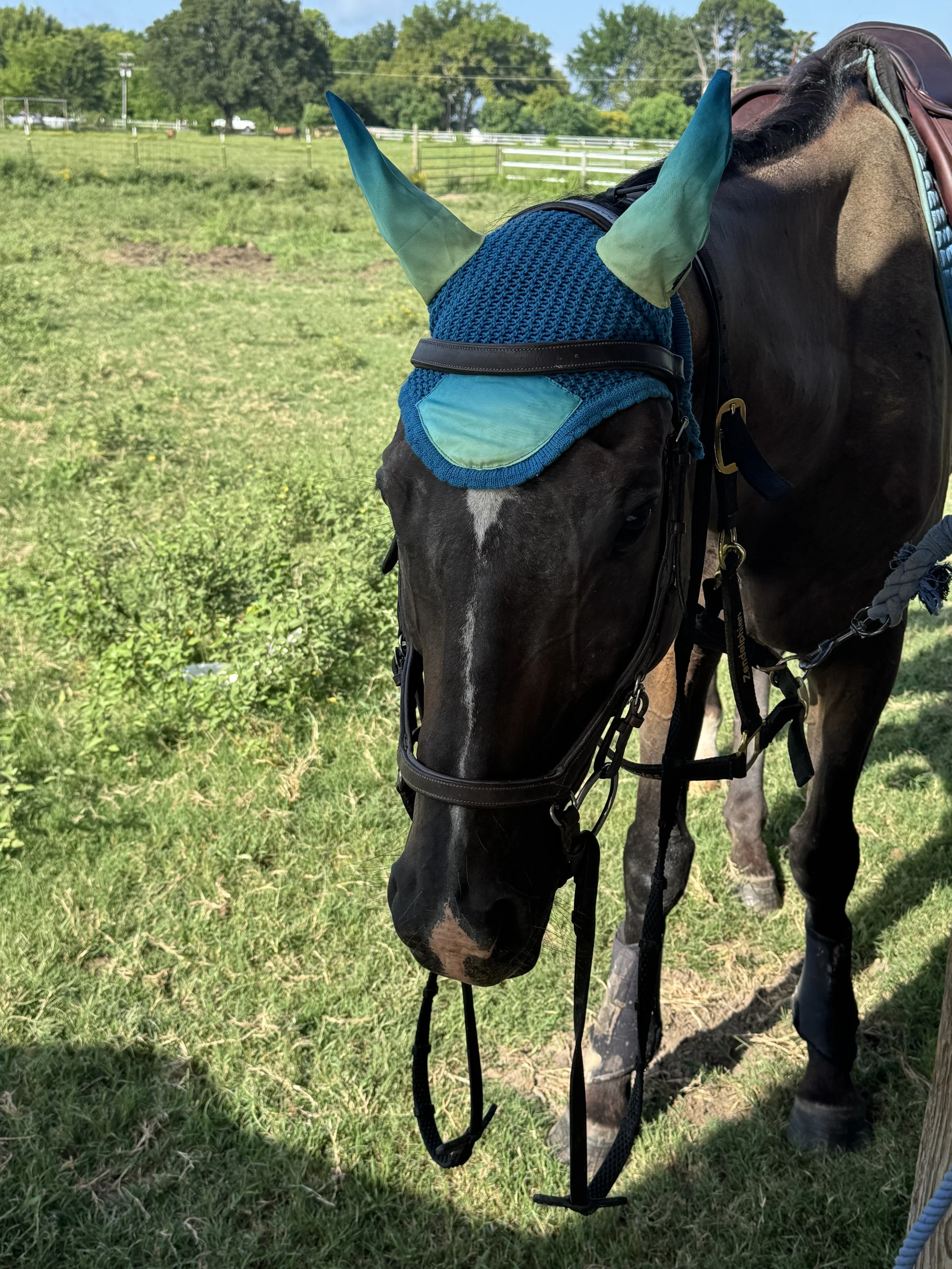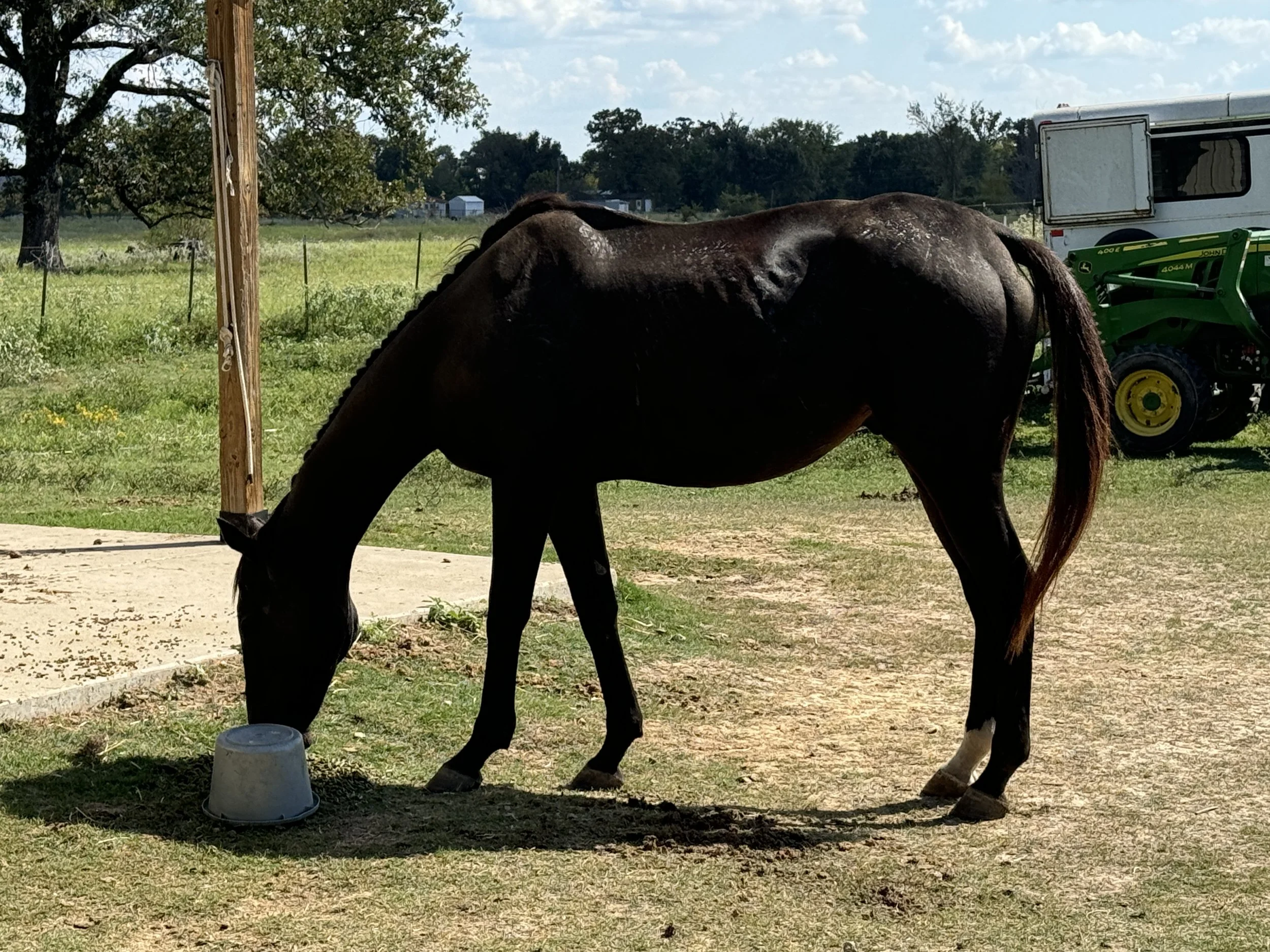 Zendelphian, aka Maverick, was purchased from a teenager who had started him on barrels but wasn’t prepared to keep a Thoroughbred over the winter. He came to Lake Fork Stables needing some groceries and a career change. He has been a great lesson horse and is learning dressage and jumping.